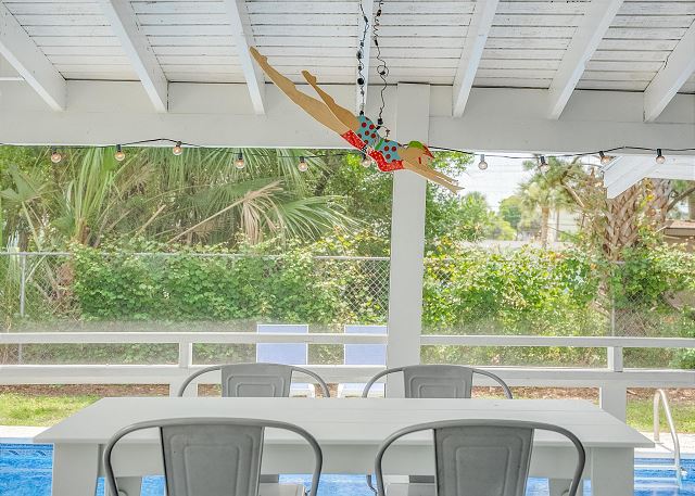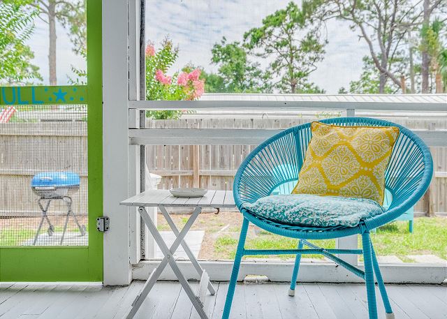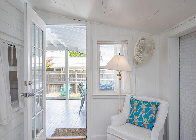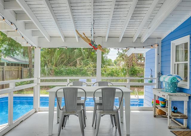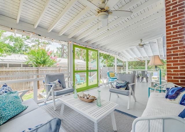 One truly standard Tybee offering is the large screened porch! Seems everyone who comes to Tybee migrates to the screened porch to eat, relax, nap, read, enjoy Mermaid Morning Bliss coffee, cocktails in the evening, people-watch...whatever...it's just the perfect space for any beach cottage!